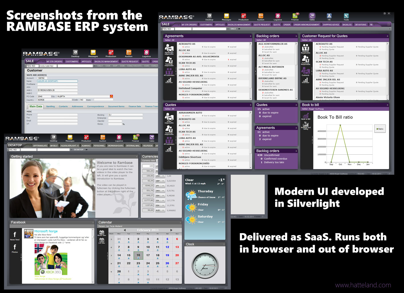 Rambase is an ERP system developed by Hatteland Computer. It is a complete business system made up of modules for sales, customers (CRM), purchasing, warehousing, production, auctions, economics, specialized trade (retail), human resources and web shops. In addition to being an ERP system, Rambase is also the name of the database used by the Rambase ERP system. It’s a database system developed by Hatteland Computer where all data is stored in RAM.