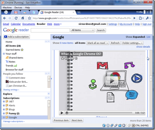 In addition, there’s Gmail, Picasa (where you can upload your pictures), Docs (word on web), Talk (MSN wannabe), Calendar, Sites, Maps, Translate and many more! The one that I’ve fell in love with is Reader. This is an RSS reader where you can have one place to read about everything that you care about (at least when it comes to computer-stuff). I also use it to get notified when there’s a new episode of one of the 20 series (yes, I know.. it’s a lot) I’m watching. All this with ONE login, and it’s even auto login! Sweet! Oh, did I forget the best browser on the market? Google Chrome