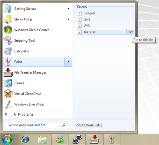 You also got this “pin” functionality in the start menu. Nice if there’s for example documents you need to add to some kind of favorite list or similar.